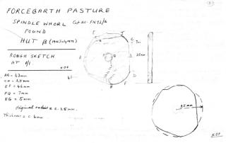 Forcegarth Pastures: Spindle whorl small finds card sketch